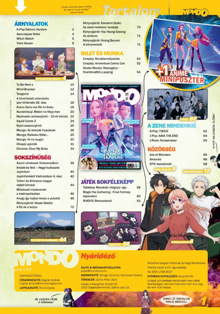 Megjelent az augusztusi Mondo magazin, a legújabb dizájnnal, változatos animés, mangás, japán és ázsiai kultúrás, kreatív részleggel, a számban is bemutatott menő aktuális animékkel és K-Pop Demon Hunters miniposzterrel!